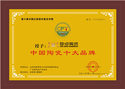 第6屆中國泛家居年度總評榜授牌儀式中獲得“中國陶瓷十大品牌”