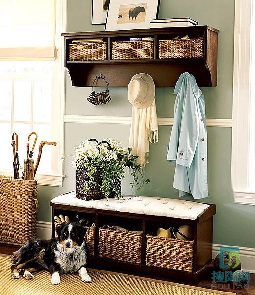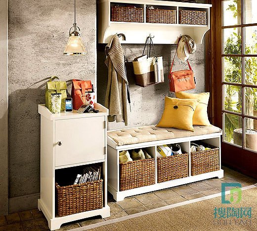 編輯建議:如果你家的空間很小,玄關處放一個小巧而且多功能的架子也是精明選擇。最好這個架子的擱板有三層或者三層以上,這樣就可以根據情況放置不同的物品,將美觀和實用集于一身。此外,收納鞋柜可以選擇帶很多抽屜的,可分別收納鞋子、小件的衣物、手套等物品。還可以在旁邊空白墻壁上安裝掛鉤和擱架,收納進門后脫下的衣物,方便尋找。