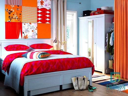 流行設計二:局部運用重彩的方法加以修飾,但不宜過多,要搭配均勻,比例得當。可選擇淺色調、中間色作為家具及床罩、沙發、窗簾的基調。