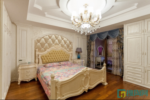 主臥與書房十分高雅,這里沒有多余的色彩、布置和家具,沒有喧囂與繁冗,一派寧靜悠遠;設計將原本不規則且略顯零亂的天花加以簡化整合,改變后的主臥空間呈上升之勢,置身其中給人積極向上之感,表現業主對快樂人生的追求;設計采用傳統的紅橡裝飾柜把主臥與書房兩個空間加以適當區分,形成一個隔而不斷,分而不離的互動空間,愜意的、時尚的、成功人士的品質生活體驗盡在其中。