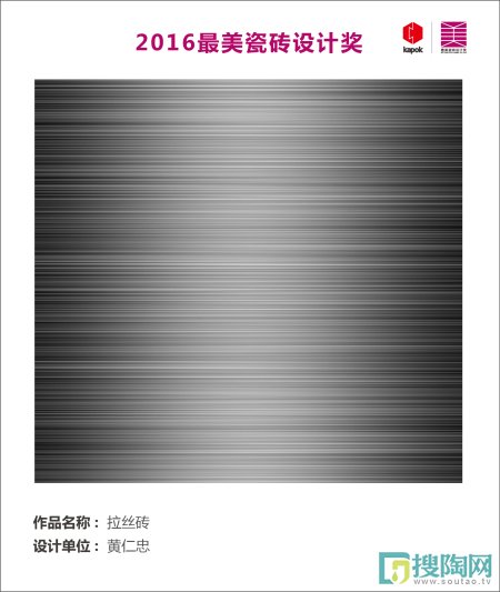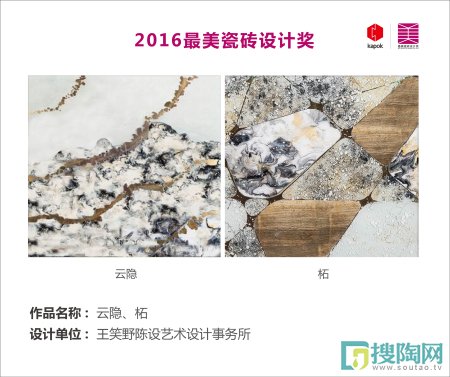 近日,紅棉設計概念獎之“最美瓷磚設計獎”完成了評審工作,來自浙江設計師黃仁忠的“拉絲磚”、浙江設計師林鎮的“山城”、廣州市和馬裝飾設計有限公司的“獨領風騷”、立品設計的“叢林秘語”彩繪磚、蘇州阿丁室內工作室的“格”和王笑野陳設藝術設計事務所的“云隱”、“柘”共7套瓷磚產品設計概念方案最終脫穎而出,摘得“2016最美瓷磚設計獎”桂冠。