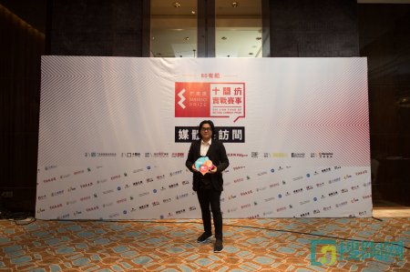 評委何宗憲先生拿著手持牌合影