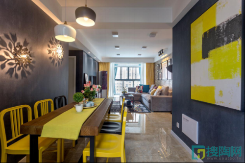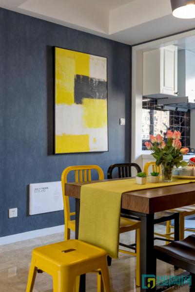 設(shè)計(jì)說(shuō)明:本案屬于比較中規(guī)中矩的小三房戶型,在平面處理上面在滿足使用的基礎(chǔ)上進(jìn)行空間美化。因?yàn)轱L(fēng)格定位的原因,吊頂方案也處理的極其簡(jiǎn)單,只是將原梁的位置進(jìn)行優(yōu)化修飾。案例因人而異,遇到懂的人也就出來(lái)了對(duì)的效果。本案業(yè)主為一對(duì)時(shí)尚的小夫妻,剛來(lái)溝通的時(shí)候就拿著一堆工業(yè)和宜家風(fēng)格的照片,喜好分明,喜歡工業(yè)的文化內(nèi)涵卻不想把家做的破舊不堪,喜好宜家的簡(jiǎn)潔明快卻又看不上宜家的單薄沒(méi)質(zhì)感。風(fēng)格定位上一度陷入僵局,直到女業(yè)主出現(xiàn),兩個(gè)女人碰撞出了色彩的火花。色彩沒(méi)有界限,既可以柔和工業(yè)的粗狂又能過(guò)度小巧的家具。深藍(lán)的墻紙明黃的窗簾和掛畫(huà),在空間處理上亦可以參考一幅畫(huà),反過(guò)來(lái)就聯(lián)想到了波普風(fēng)格。軟裝方案一提出,雙方一拍即合,本案也得以順利收官。