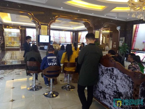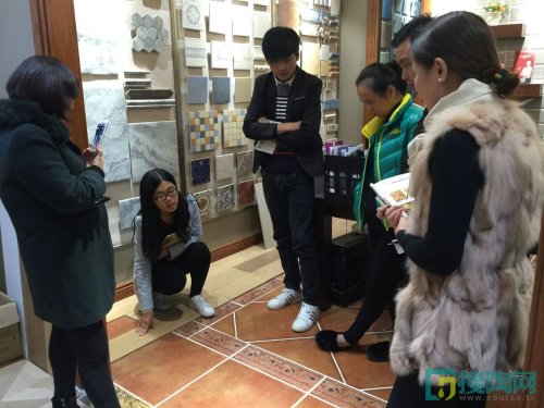 與學(xué)員們在樣板間細(xì)致的講解波諾尼亞仿古磚知識