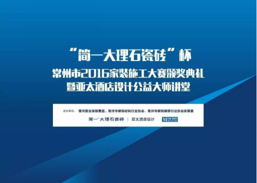 2016年,亞太酒店設計與簡一大理石瓷磚聯合推出“亞太酒店設計公益大師講堂”全國巡講,繼重慶、成都、武漢、烏魯木齊、沈陽等全國大站取得圓滿成功之后,亞太酒店設計公益大師講堂即將落地常州,這是簡一大理石瓷磚與亞太酒店設計今年為中國設計圈特別打造的開放性、公益性的學術交流活動。