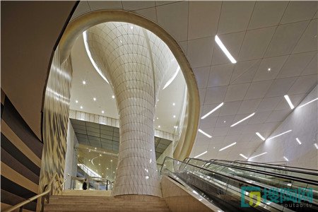 室內空間形態呼應了建筑的精神氣質,旋轉、流線、律動構成了此處空間的主格調。