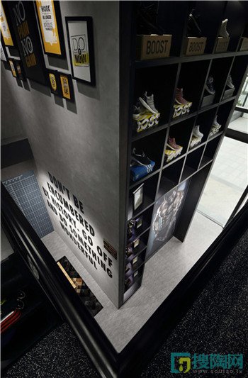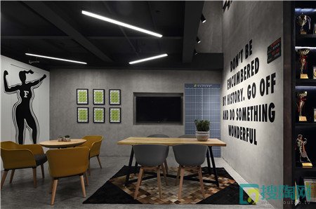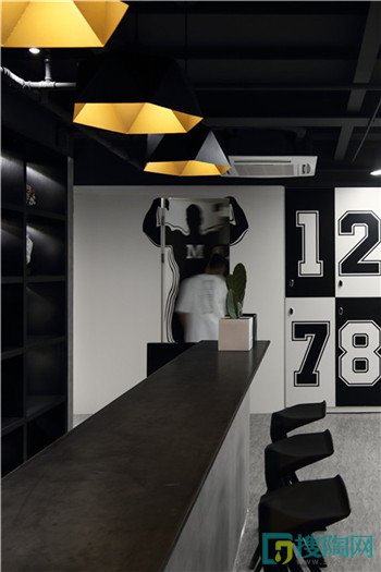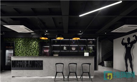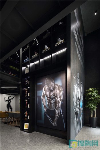 整體氛圍以現代工業風格為主。黑色系作為主基調,酷勁十足。為了讓顧客盡快進入鍛煉的狀態,在入口大廳以大面積手繪涂鴉作為健身房的主題氛圍。美國力量及體能訓練協會聲明,在經常看見的地方放置激勵性的圖片,健身類形像和圖像已經被證實是能夠提高競技運動員成績的一個重要因素。