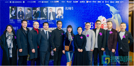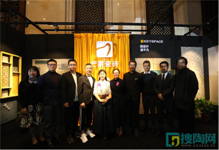 名師評委嘉賓在芒果瓷磚品牌展前合影