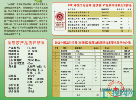 次年,連體坐便器FB1682在技術上進行了升級,4L節水完勝往年節水標準關口,48mm超大管徑設計,獨立分流下水方式,在1.5秒內快速排污。令人嘆服的噴射虹吸式沖水技術,還能實現靜音沖水。兩檔沖水設計,更是將節水更具人性化。同年送檢參評的還有連體坐便器FB1652及FB1668,三款產品囊括當年前五,一舉成為“金馬桶”獎評比的大贏家。
