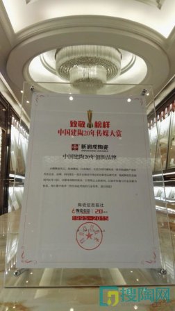 隨后,在“中國建陶20年傳媒大賞·中國建陶20年創新品牌”頒獎典禮上,憑借悠久的品牌歷史以及領先的品牌創新實力,新潤成陶瓷榮膺“中國建陶20年創新品牌”大獎,成為活動現場最耀眼的明星品牌。