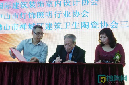 國際建筑裝飾室內設計協會、中山市燈飾照明行業協會、佛山市禪城區建筑衛生陶瓷協會三方戰略合作簽約