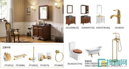 美式古典風的白金漢宮系列浴室柜搭配羅浮宮1842龍頭、漢斯4號古典五金件、奧斯卡1149坐便器、夢露8號浴缸以及羅浮宮2137落地浴缸龍頭,濃郁的美式古典氣質,簡潔而不失浪漫奢華。