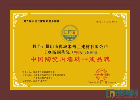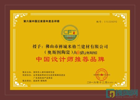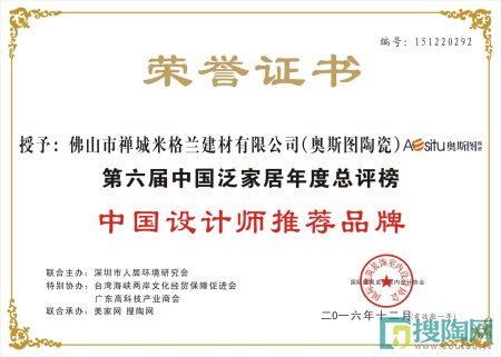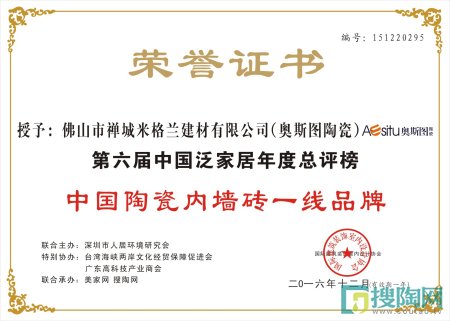 2016年1月7日下午,奧斯圖陶瓷應(yīng)邀出席“第四屆中國泛家居領(lǐng)袖品牌論壇暨第六屆中國泛家居十大品牌總評榜”,并榮獲“中國陶瓷內(nèi)墻磚一線品牌”和“中國設(shè)計(jì)師推薦品牌”兩項(xiàng)大獎(jiǎng)。