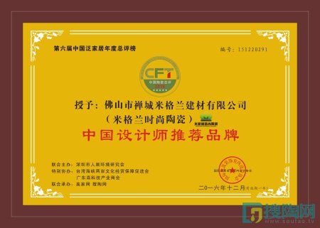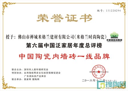 在經過一番激烈的角逐后,米格蘭時尚陶瓷在大牌云集的評選活動中成功跑出,在第六屆中國泛家居十大品牌總評榜中分別獲得“中國陶瓷內墻磚一線品牌”、“中國設計師推薦品牌”。