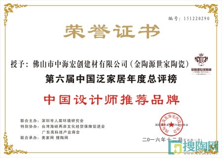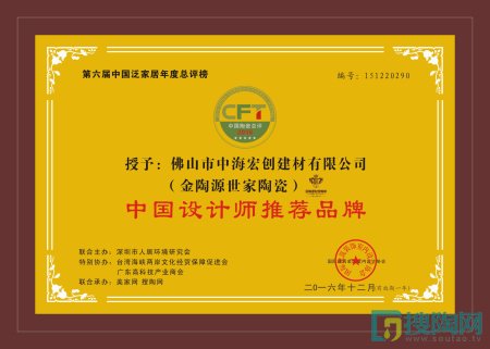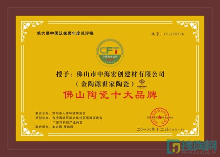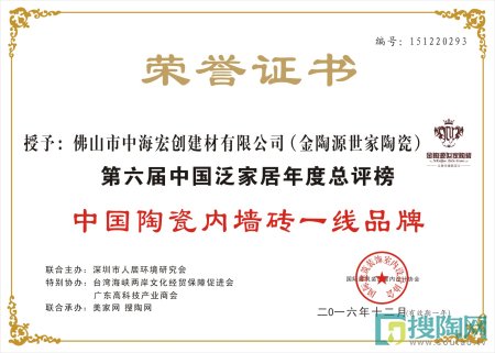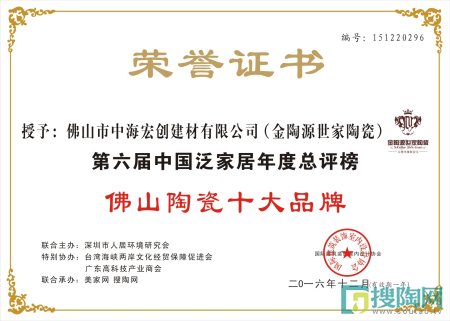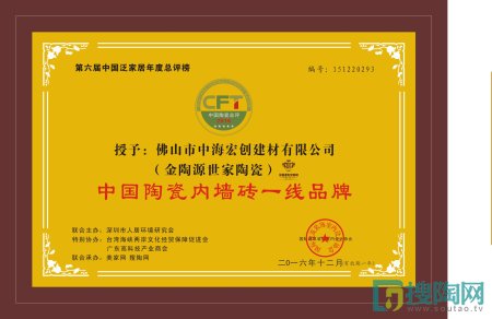 1月7日,由國際建筑裝飾室內設計協會、中國國際環境藝術行業協會綠色節能家居建材委員會、臺灣海峽兩岸文化經貿保障促進會、深圳市人居環境研究會攜手美家網、搜陶網共同舉辦的“第四屆中國泛家居領袖品牌論壇暨第六屆中國泛家居十大品牌總評榜”活動在金盈綠島國際中心隆重舉行。在本次活動中金陶源世家陶瓷榮獲“佛山陶瓷十大品牌”、“中國陶瓷內墻磚一線品牌”、“中國設計師推薦品牌”三項大獎。