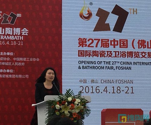 佛山中國(guó)陶瓷城集團(tuán)有限公司常務(wù)副總裁兼商業(yè)運(yùn)營(yíng)中心總經(jīng)理余敏(女士)致開(kāi)幕辭