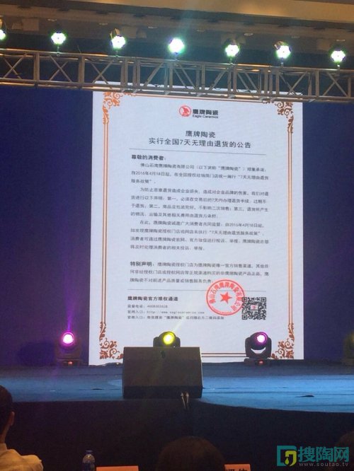 2016年4月18日,鷹牌陶瓷“全國7天無理由退貨政策”正式頒布實施,該匠心政策包含全國授權專賣店和網絡店鋪。