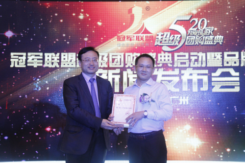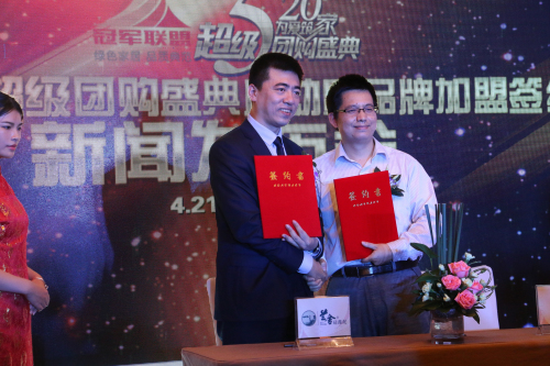 4月21日下午,“520為愛筑家——冠軍聯盟超級團購盛典啟動暨品牌加盟簽約新聞發布會”在廣州圣豐索菲特大酒店隆重召開。在本次發布會上,冠軍聯盟宣布,將在5月份聯合泛家居行業10+一線品牌:大自然地板、東鵬瓷磚、雷士照明、慕思寢具、友邦吊頂、美的中央空調、美的廚電、蘭舍硅藻泥、樂視、多喜愛兒童家具、皇派門窗,盛大推出“520為愛筑家——冠軍聯盟超級團購盛典”活動,全國10萬家終端門店為愛讓利。同時,冠軍聯盟與蘭舍硅藻泥、樂視兩位新成員簽訂了加盟協議,為皇派門窗、多喜愛兒童家具頒發“2016年戰略合作品牌”牌匾。冠軍聯盟10+成員品牌領導及50多家媒體記者共同見證了這一行業盛會。