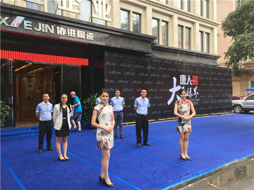 第27屆中國(佛山)國際陶瓷及衛浴博覽交易會在風雨過后正式開啟,鑼鼓喧天、熱鬧非凡。這是一場把脈行業動向的全國盛會,作為陶瓷一線品牌的協進陶瓷,以“唐人裝”為主基調,協手兩大新品“晶克拉”和“K金大理石瓷片”高調亮相。