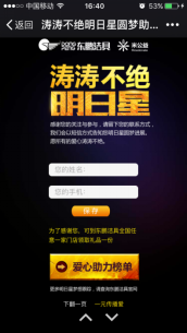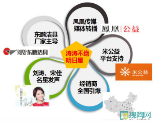 2016年“濤濤不絕明日星”大型公益項目是由東鵬潔具廠家領頭發起,聯動線下一千多家門店經銷商傾力配合全國引爆,攜手全國首家創新型移動互聯網公益平臺——米公益聯合發起“明日星學校蒲公英計劃”,讓本次公益活動傳遞給更多的愛心人事。除此之外,東鵬潔具聯手鳳凰傳媒、騰訊、搜狐、網易、新浪、百度、中潔網等數十家知名媒體共同傳播,更成功創建“濤濤不絕明日星”百度百科詞條獲得百度百科專業認可。同時更邀請到劉濤、宋佳、張宇等一線明星為愛發聲,只愿讓愛的聲音傳播得更遠,讓更多有需要的“明日星”獲得愛的支持!