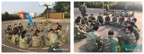 上午9時許,培訓人員到達基地。成員們稍事休整過后,分成6個隊伍。分隊后,隊員紛紛出謀劃策,共同商議隊伍的隊名、口號、隊歌及團隊展示方式,隨后各個隊伍迅速投入到緊張有序的培訓當中。看似簡單的轉體訓練、眾人搖鼓、合力書寫等項目,無不考驗著團隊的合作力與凝聚力。