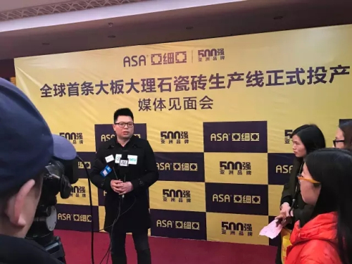 林總表示第一條生產線開啟了瓷質釉面磚的超平時代,第二條生產線首創了“55°柔光大理石”瓷磚,第三條生產線將開創900*1800mm規格大板大理石瓷磚潮流。這是一條國際領先的智能化瓷磚生產線,產品進入柔光真通體+大板大理石時代。這條大板大理石生產線,原料加工采用1600噸連續球磨機(行業最大),1800噸/天噴塔(行業最大),采用7800噸的壓機,釉線設備全采用數碼智能化設備,采用亞細亞專利的表面柔光+無痕垂直布料技術,使產品表里如一,真正替代天然大理石。
