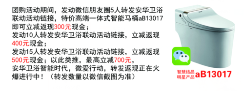 二、【智能時代,微信轉發返現】 安華衛浴上海聯動工廠大補貼,感恩回饋廣大業主,以最實惠的價格,頂級的品質讓利廣大的業主朋友們。