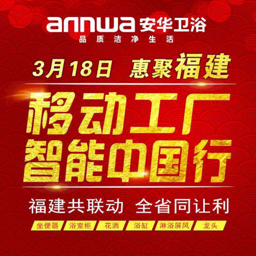 2月23日下午,在安華衛(wèi)浴總部?jī)A力支持下,安華衛(wèi)浴“移動(dòng)工廠 智能中國(guó)行”福建站啟動(dòng)大會(huì)隆重舉行,同時(shí)也宣告著本次“移動(dòng)工廠 智能中國(guó)行”大型讓利促銷活動(dòng)的強(qiáng)勢(shì)開啟。