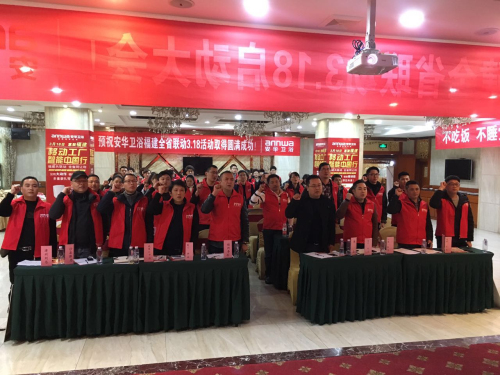 在啟動(dòng)大會(huì)上,安華衛(wèi)浴總部領(lǐng)導(dǎo)代表圍繞活動(dòng)政策、活動(dòng)方案進(jìn)行了詳實(shí)的講解,以確保與會(huì)人員都明確本次活動(dòng)的優(yōu)惠力度和各項(xiàng)工作的必要性。緊接著再為福建各地區(qū)經(jīng)銷商團(tuán)隊(duì)做了前期團(tuán)隊(duì)動(dòng)員、任務(wù)分配,并進(jìn)行軍令狀的簽署。