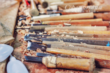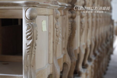 木立方浴室柜從精選上好木材、開料、烘干、木材暴曬、技術處理、木工制板、雕刻、打磨、木工磨砂、木工制作、上底漆等工序,多達42道工序,層層把關,從而保證每一個木立方浴室柜都是精粹品質,將歷史的人文感與皇室尊貴融為一體。