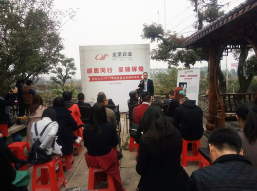 感恩同行,圣鑄輝煌。2月28日,全圣企業(yè)2017媒體春茗會(huì)暨攝影頒獎(jiǎng)活動(dòng)在全圣企業(yè)農(nóng)莊圓滿(mǎn)舉行。全圣分公司銷(xiāo)售總經(jīng)理王竑、偉達(dá)分公司銷(xiāo)售總經(jīng)理肖欽巧、全圣企業(yè)市場(chǎng)部總監(jiān)李智明,以及30多家行業(yè)媒體代表出席了此次活動(dòng)。