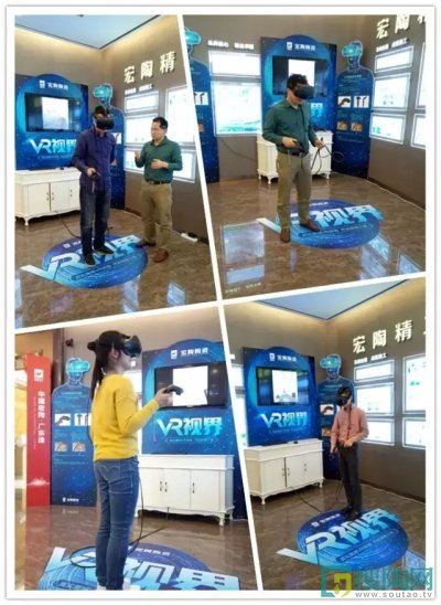 宏陶720°VR實景體驗區(qū)設立于總部展廳文化區(qū)內(nèi),帶上VR眼鏡后,你可以身臨其境般的感受新家裝修實景,不僅僅是簡單的看平面效果圖,你可以在其中走動,感受3D效果,可以開門進入客廳、廚房、書房、衛(wèi)生間等空間,甚至可以打開房間里面的電視、空調(diào)、冰箱等,且可以根據(jù)自己的喜好更換瓷磚,讓裝修更加生動有趣。