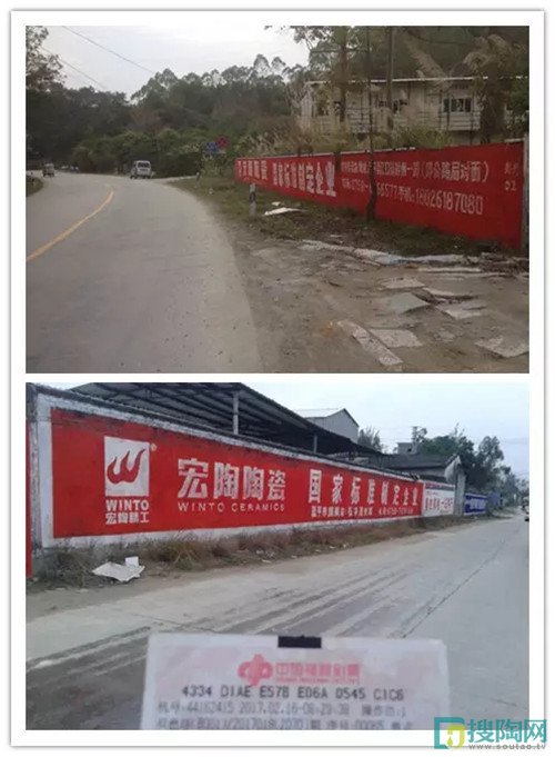 宏陶陶瓷的墻體廣告,猶如雨后春筍般紛紛涌現