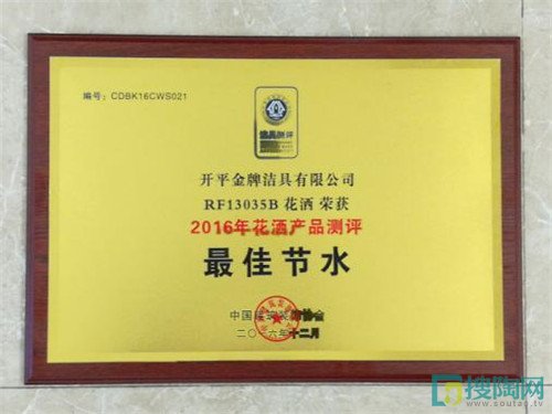 金牌衛(wèi)浴攜淋浴大花灑RF13035B榮獲2016年度“金花灑·最佳節(jié)水獎”