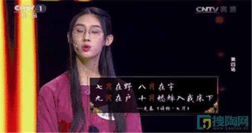 看看她在念詩的時候,靈動的臨場表現(xiàn),完勝對手。念到“七月在野,八月在宇 ,九月在戶,十月蟋蟀入我床下”的時候,自帶“陶醉”,會心一笑。連董卿和嘉賓都萌倒了。用這種狀態(tài)面對挑戰(zhàn),當(dāng)然事半功倍。