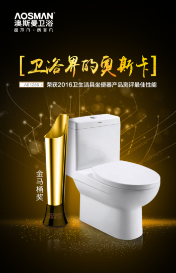 澳斯曼衛浴,作為廚衛行業百強企業之一,16年來,在產品和服務上,一直堅持品質制勝!在2016年中國建筑裝飾協會舉辦的衛生潔具坐便器、廚衛水龍頭、花灑產品測評及調研活動中,AS1286一舉獲得【最佳性能獎】和金馬桶榮譽獎杯,再一次詮釋出澳斯曼非凡的品質之道。