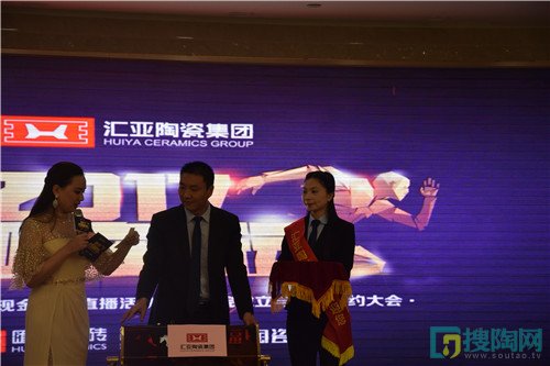 2017年3月6日15:00,匯亞陶瓷集團首發現金抽獎直播活動暨集團商學院成立與媒體簽約大會在總部大樓四樓多功能會議室隆重舉行。匯亞陶瓷集團董事長兼總裁冼明寬先生,中國建筑衛生陶瓷協會副秘書長尹虹先生,集團副總裁兼營銷管理中心總經理駱智誠先生,集團副總裁兼財務總經理劉衍英先生,集團副總裁兼清遠生產基地總經理冼耀桃先生,集團副總裁兼綜合部總經理冼明廣先生,集團監察部總經理徐發明先生,恒福品牌總經理曹俊先生,匯亞陶瓷集團市場部總監簡倩敏女士等領導及匯亞磁磚、恒福陶瓷經銷商代表,總部營銷人員,各大媒體機構代表總計一百余人參加了本次活動。