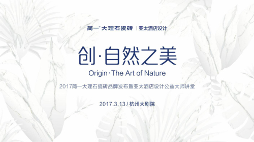 2017年3月13日,“創(chuàng)·自然之美——2017簡(jiǎn)一大理石瓷磚品牌發(fā)布暨亞太酒店設(shè)計(jì)公益大師講堂”將在杭州大劇院舉行,帶你以另外一種角度看自然。