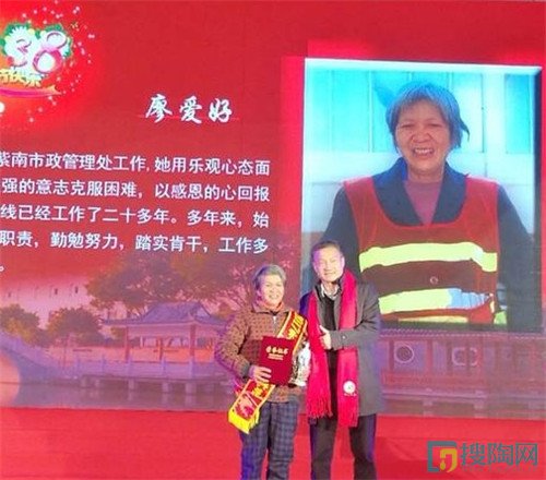 67歲的環衛女工廖愛好,用自己勤勞的雙手一點一滴地創造著屬于自己的幸福生活,用辛勤的汗水譜寫了一曲環衛工人愛崗敬業、無私奉獻之歌。她不懼污穢,在崗位勤勤懇懇地工作,默默無聞地奉獻,五年如一日地做好紫南公廁保潔,協助紫南通過市旅游局的旅游公廁評審,用愛崗敬業的精神展現了當代婦女的吃苦耐勞、不怕犧牲的傳統美德,受到了同事和村民的一致贊揚,而她卻謙虛地說:“我只是紫南近百個環衛女工中最普通的一員。”