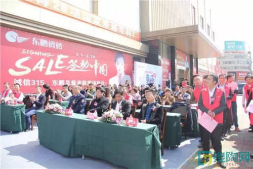 活動當天,由廣東東鵬控股股份有限公司華中營銷中心總經理鐘雄華、宜興超時代建材有限公司總經理張志強、王葉明共同帶領宜興東鵬銷售服務人員,以及江蘇地區各經銷商代表共同宣誓,再次向消費者做出服務宣誓承諾:堅持“以客戶為中心”的服務理念,踐行有陽光照耀的地方就有東鵬為消費者送去的服務,真情無處不在。