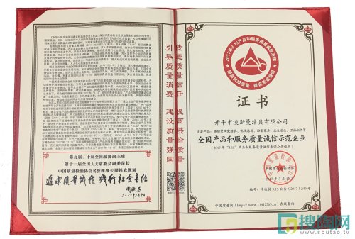 澳斯曼獲【全國產品和服務質量誠信示范企業】榮譽