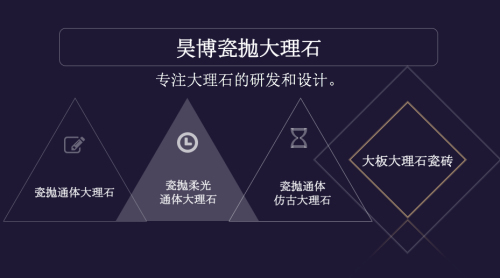瓷拋大理石作為2016年底成系列成規模推向市場的創新性產品,一經上市,備受追捧!此系列產品是繼昊博冰晶玉石之后,是品牌又一歷史性的巔峰之作。在未來,昊博將持續專注大理石產品的研發和設計,將向市場推出瓷拋通體大理石,瓷拋柔光通體大理石,瓷拋通體仿古大理石以及大板大理石瓷磚等眾多極具競爭力的大理石瓷磚產品,我們相信,未來將深刻改變行業大理石瓷磚產品的競爭格局,將為廣大的零售、家裝、工裝等市場群體提供極具競爭力的選擇。