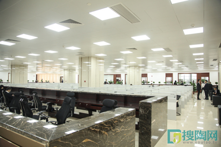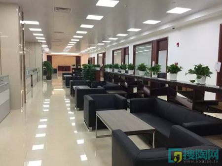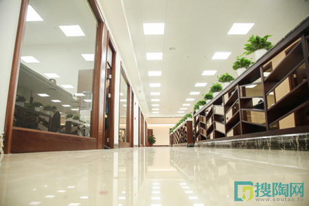 方正的宏陶LOGO,鑲嵌在層巒疊嶂的背景里面,恢宏大氣,為整個空間定下基調。棕色的形象臺巧妙地融入,整齊有序的辦公設備、熠熠生輝的燈光,整個前臺區域散發著明朗的朝氣。