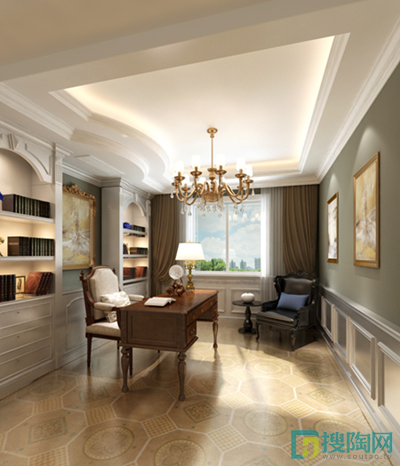 褐色的城市印記N-2E50001系列,僅僅用了同一編號三款不同花紋的瓷磚組合,搭配簡約的家具,便營造出一個極簡的文雅心靈居所,讓書房散發著輕松舒心的氣息。