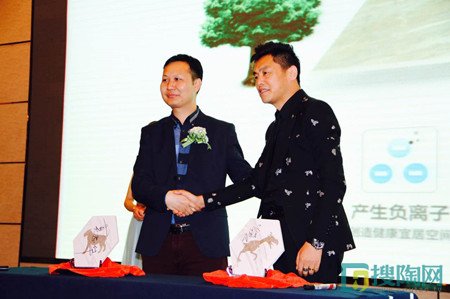 隨后,特地•負離子瓷磚副總經理莫總與邀請嘉賓孟也一起進行品牌全面升級的簽字儀式。