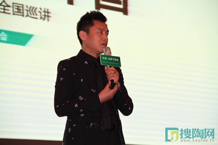活動正式開始,主持人請出了金華裝飾協會黨委書記曹有余先生上臺致辭。曹會長指出通過這次論壇,希望能創造出更多,更好的,有文化藝術,有創意,有品位的綠色健康設計精品。同時亦表示特地•負離子瓷磚亦是設計師們追求的綠色新產品。