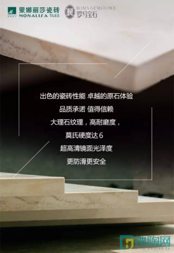 把傳統通體瓷質磚與全拋釉推上一個新的高度,“羅馬寶石”系列以傳統通體瓷質磚的全玻化胚體為產品胚體,在產品紋理的成型上采用3D噴墨滲透工藝生產的全通體玻化瓷質拋光磚,帶給空間設計師與終端消費者前所未有的消費體驗。不少行業專家人士表示,蒙娜麗莎瓷磚 “羅馬寶石”系列新品推出,可以說為陶瓷行業產品系列注入了新鮮的生命力。