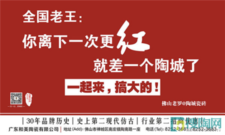 源于1987,純佛山造!憑借30年的匠心質造以及強大的品牌實力,陶城瓷磚得到業界內外及全國消費者的認可和推薦,毫無懸念摘得了“陶瓷品牌100強”榮譽!