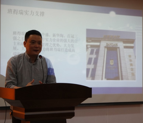 在發布會上,班得瑞陶瓷執行董事王輝洋從班得瑞陶瓷的發展歷史、班得瑞陶瓷品牌來源以及品牌經營理念和今后的努力方向。執行董事王輝洋提及到班得瑞陶瓷集合中盛、百冠、新華陶三強之長,借助三方強大的綜合實力企業進行自主科研、生產、設計、管理之優勢,大力發展配套產品,大膽突破。致力將班得瑞打造成深受終端消費者認可和信賴的行業高端品牌。此外,王董表示,班得瑞陶瓷以“攜手班得瑞,共創輝煌”為經營理念,并且堅持以人為本的管理體制,以不斷進取、勇于創新的精神,不斷開拓與完善陶瓷生產、銷售服務產業鏈。竭誠將最優質的服務帶給廣大客戶。