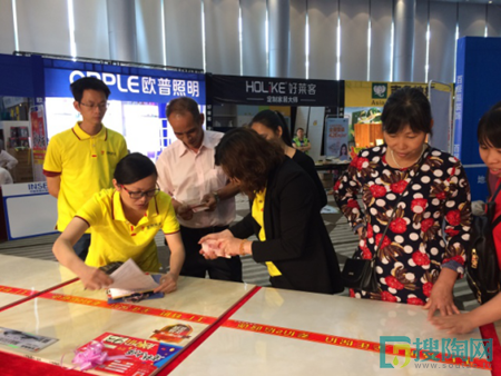 活動尚未開始,宏陶陶瓷展位便聚集了眾多客戶,客戶通過看、敲、問等方式咨詢了解產品。宏陶“純產地廣東”的過硬產品品質得到了客戶的一致認同,客戶紛紛提前下定以鎖定優惠。